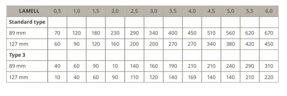 i bunnen til 89 mm. Kun hvit og grå til 127 mm.